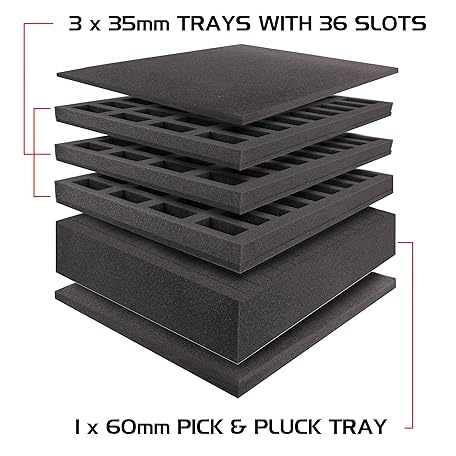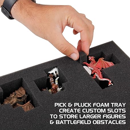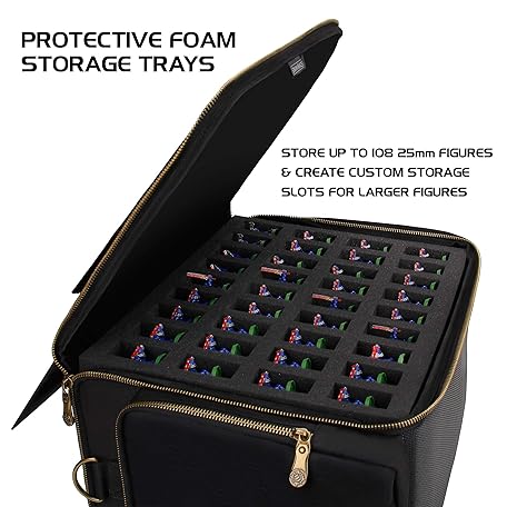 Thông tin sản phẩm ENHANCE Portable Miniature Figure Storage & Carrying Case - 4 Foam Layers fits 108 Infantry Minis & Pick & Pluck for Large Figures - Book Sleeve & 2 Accessory Pockets for Measuring Tape, Dice & More