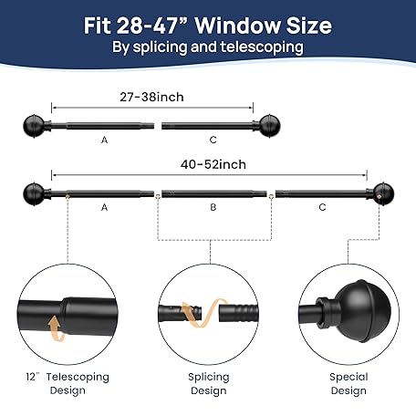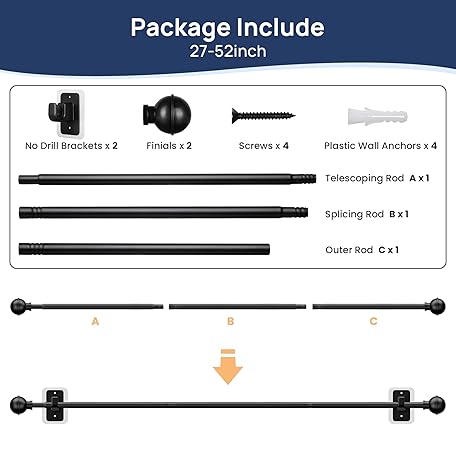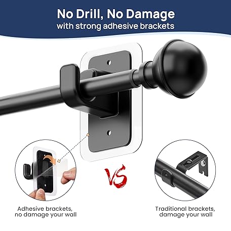 Thông tin sản phẩm ENJOYBASICS No Drill Curtain Rods for Window 28 to 47 Inches, 5/8 Inch Diameter Renter Friendly Drapery Rod with Adhesive Brackets without Drilling, Adjustable from 27 to 52 Inches, Black