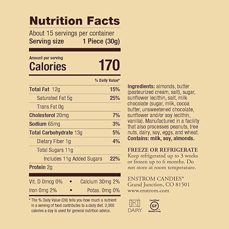 Sản phẩm Enstrom Milk Chocolate Almond Toffee 1lb box | Handcrafted | Gluten Free | Kosher Dairy | All Natural đang được bán với giá ưu đãi là $38.1391 tại nước Mỹ.