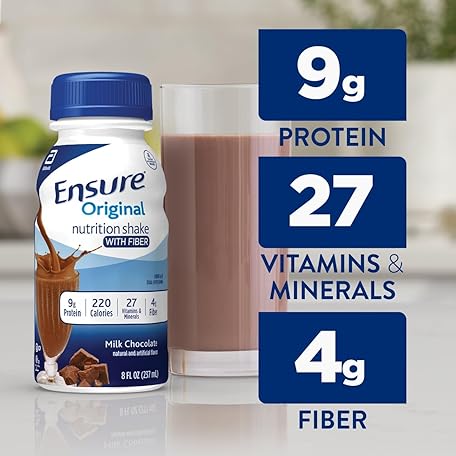 Sản phẩm Ensure Original Milk Chocolate Nutrition Shake With Fiber | Small Meal Replacement Shake | Ready to Drink | 9g Protein, 27 Vitamins and Minerals | 8 fl oz - 24 Pack đang được bán với giá ưu đãi là $48.4396 tại nước Mỹ.