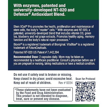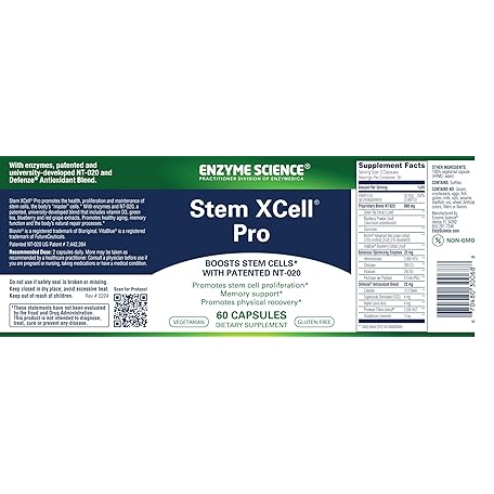 Thông tin sản phẩm Enzyme Science, Stem XCell Pro, Antioxidant Support for Cellular & Immune Health, Stem Cell Health Supplement, 60 Capsules