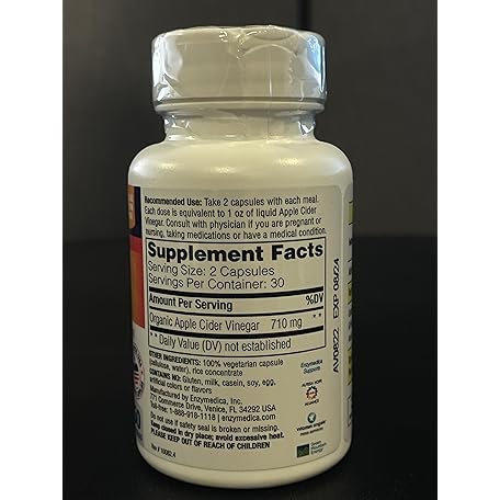 Thông tin sản phẩm Enzymedica, Apple Cider Vinegar, Healthy Weight and Digestive Support, 60 Count