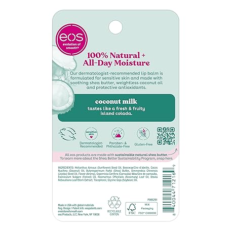 Thông tin sản phẩm eos 100% Natural Lip Balm- Coconut Milk, eos lip balm, All-Day Moisture, Lip Care, Shea Butter, Moisturizing, Sensitive Skin,0.14 oz, 2 Pack
