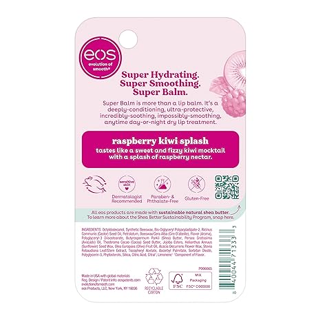 Thông tin sản phẩm eos 24H Moisture Super Balm - Raspberry Kiwi Splash, Day or Night Lip Treatment, Made for Sensitive Skin, Lip Balms & Moisturizers, 0.35 fl oz (Pack of 2)