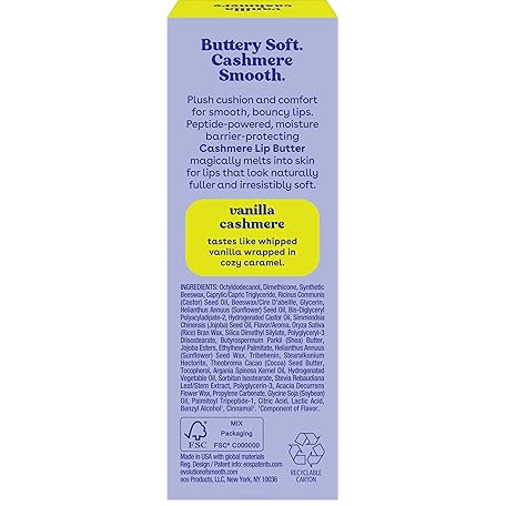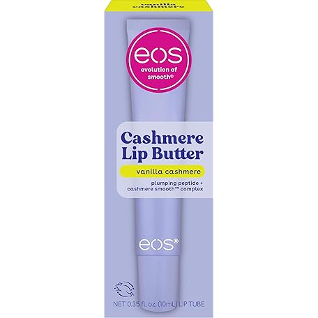 eos Cashmere Lip Butter - Vanilla Cashmere, Plumping Peptides, Smoothing, eos Lip Butter, Shea Butter, Lip Mask, Lip Moisturizer, Soft Lips, 0.35 fl oz