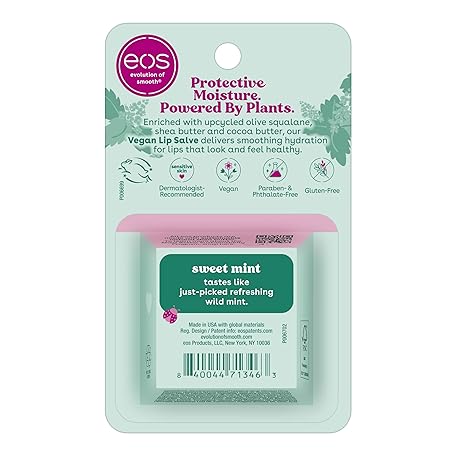 Thông tin sản phẩm eos Plant-Based Vegan Lip Salve - Sweet Mint, 100% Natural Formula, Cocoa Butter Lip Balm with Upcycled Olive Squalane, Cruelty-Free, 0.42 oz (Pack of 2)