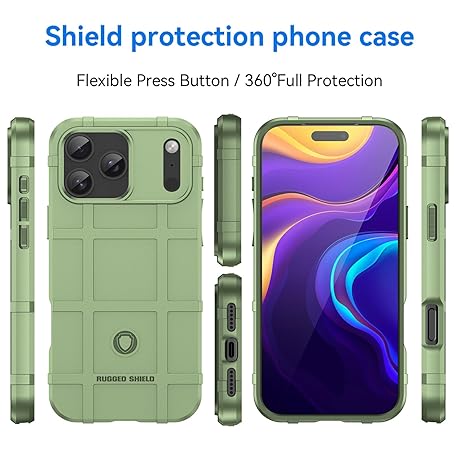Ephoou Military Grade Shockproof Case for Apple iPhone 17 Pro Max, Rugged Shield Series TPU Slim Protective Cover with Drop Protection and Enhanced Grip for iPhone 17 Pro Max HD-Green