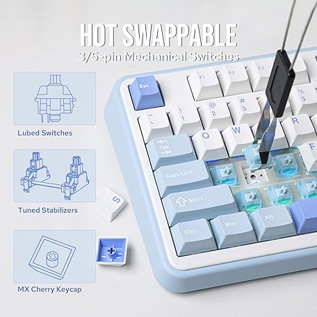 Thông tin sản phẩm EPOMAKER TH99 Tri-Mode Wireless Mechanical Keyboard with 8000mAh Battery, Hot Swappable Custom RGB Gaming Keyboard with Numpad, Gasket Creamy for PC/Mac/Office (Blue&White, Creamy Jade)