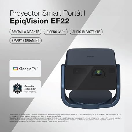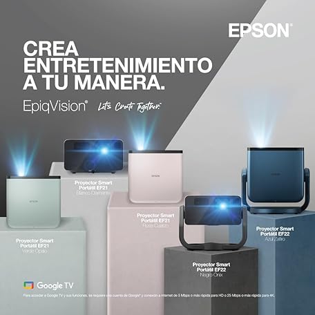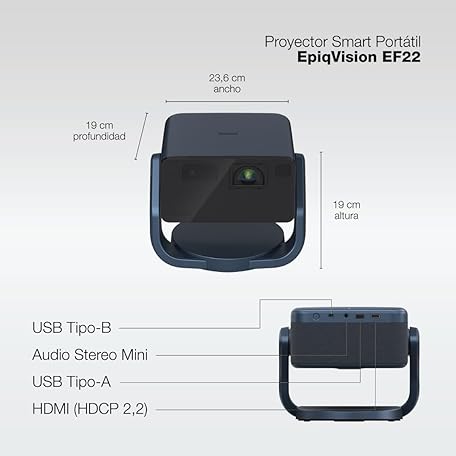 Thông tin sản phẩm Epson EpiqVision Mini EF22 Portable Smart Laser Projector, Bright 1,000 Lumens, FHD 1080p HDR, 3-Chip 3LCD, Google TV, Netflix, Swivel Stand, Stereo Speakers, Outdoor Backyard/Home Theater - Blue