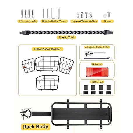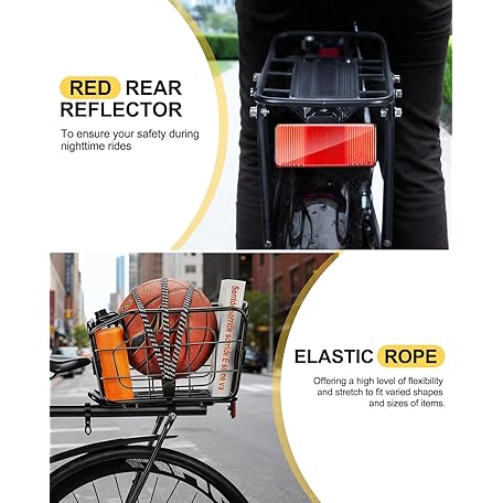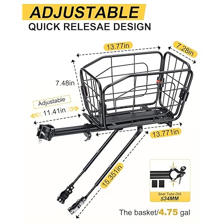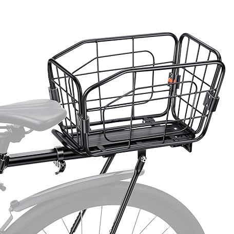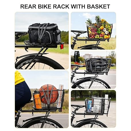 • EQIIO Rear Bike Rack with Foldable Basket – 22L, Quick Release Bike Cargo Rack Aluminum Alloy & 165LB Load, Adjustable Bicycle Rack with Reflector & Installation Tool & Free Bungee Cord, Waterproof