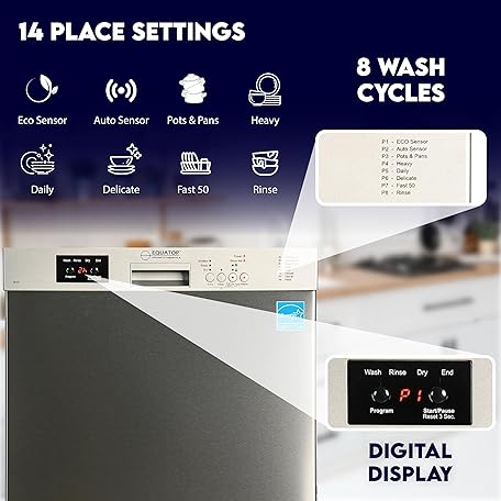 Sản phẩm Equator24" Built in Dishwasher 14 Place Setting Wine Rack 8 Wash FAST 50 Delay1/2Load 110V E-Star ADA in Stainless đang được bán với giá ưu đãi là $511.21 tại nước Mỹ.