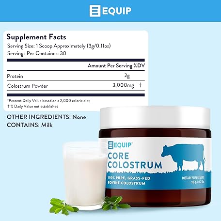 Thông tin sản phẩm Equip Foods Core Bovine Colostrum Powder - 3,000mg Grass Fed Colostrum Supplement - Gut Health, Immunity, Recovery Lactoferrin Supplements - Keto Friendly Bovine Colostrum, 30 Servings, Unflavored
