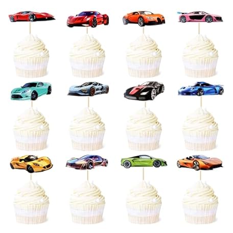 Ercadio 36 Pack Racing Car Cupcake Toppers Fighting Race Car Cupcake Picks Racing Car Cupcake Toppers for Baby Shower Racing Sports Theme Baby Shower Birthday Party Cake Decors Supplies