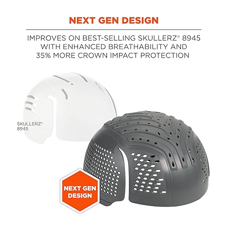 Thông tin sản phẩm Ergodyne Skullerz 8945F(x) Universal Bump Cap Insert with Extra Venting, Fits Into Any Baseball Hat, Charcoal