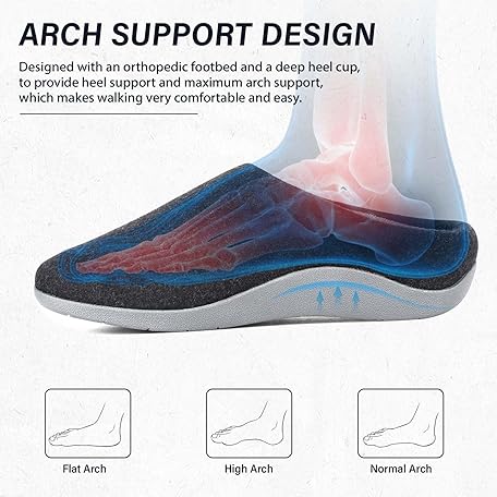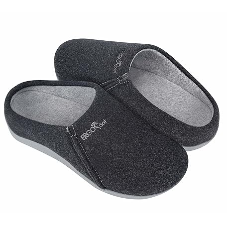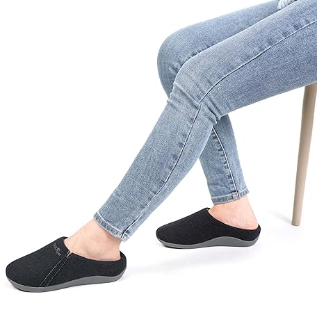 ERGOfoot House Slippers With Arch Support, Orthopedic Slippers for Plantar Fasciitis Pain Relief, Comfy Wool Felt Clog, Non-Slip Indoor Outdoor House Shoes for Women and Men/Black, W8/M7