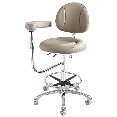 • Ergonomic Dental Saddle Stool - Adjustable Rolling Dentist Chair with Back Support for Hygienists, Assistants - Medical Office & Salon Use -Grey