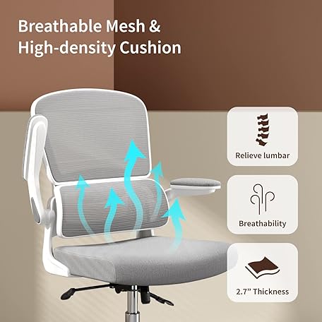 Thông tin sản phẩm Ergonomic Office Chair, Comfortable Office Chair with Flip-up Arms, Adaptive Lumbar Support, Mesh Computer Chair with Thick Cushion, White Desk Chair with 90°-130° Tilt Function