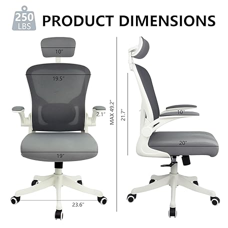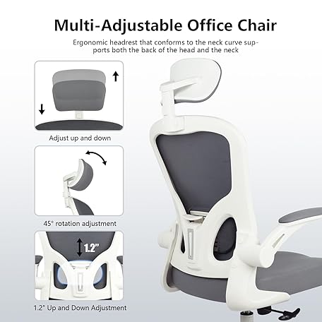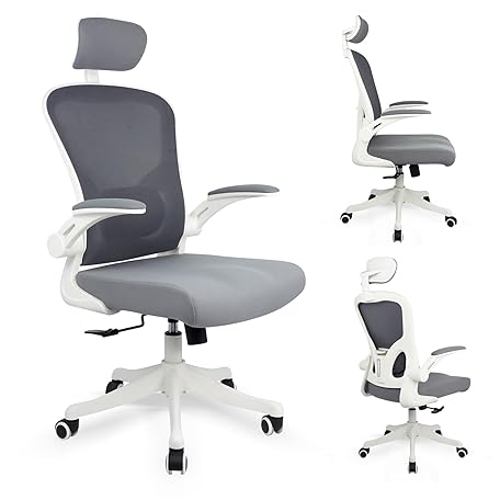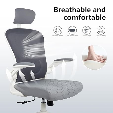 • Ergonomic Office Chair, Home Office Desk Chairs with Lumbar Support & 3D Headrest & Flip-up Arms,Mesh Back Chair for Home Office Study Chair (Grey)