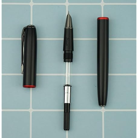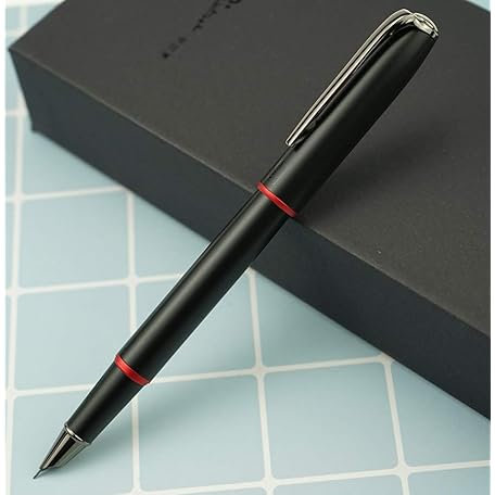 erofa Picasso 916 Matte Black & Red Ring Fountain Pen with Gift Box - Extra Fine Nib