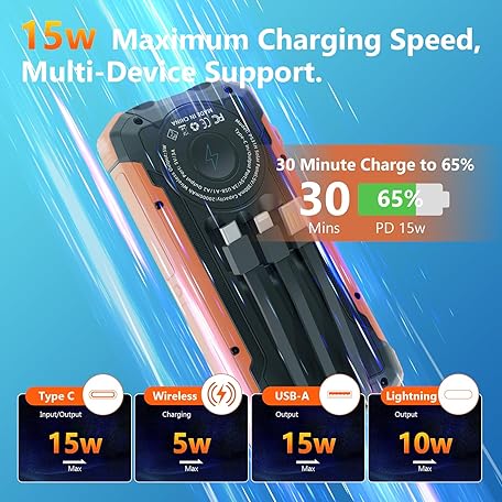 Thông tin sản phẩm ERRBBIC Solar Charger Power Bank 20000mAh, Portable Wireless Charger, 15W Fast Charging External Battery Pack with Dual Flashlight and USB C Outputs. Outdoor Mobile Power Compatible with Cell Phones