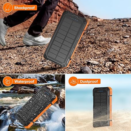 ERRBBIC Solar Charger Power Bank 49800mAh, 22.5W Portable Charger, 15W Wireless Charging, Solar Panel Charger, Built-in Four Cable, with USB C for Cell Phones, with Dual Flashlight for Camping