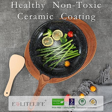 Thương hiệu ESLITE LIFE là cái tên nổi tiếng được rất nhiều khách hàng trên thế giới chọn lựa. Với kiểu dáng đẹp mắt, sang trọng, sản phẩm ESLITE LIFE Nonstick Ceramic Frying Pans Skillets Set with Lids, Non-Toxic Egg Omelette Kitchen Cooking Pans Compatible with All Stovetops (Gas, Electric & Induction), PTFE & PFOA Free (Black) là sự lựa chọn hoàn hảo nếu bạn đang tìm mua một món cho riêng mình.
