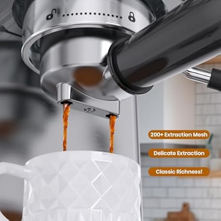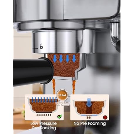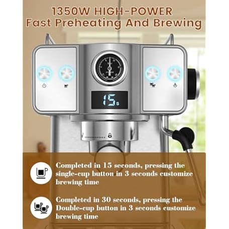 Thông tin sản phẩm Espresso Machine 20 Bar, Milk Frother Steam Wand, 60oz (1.8 Liters) Water Tank, 1350W for Home Barista Espresso Latte Macchiato and Cappuccino Maker