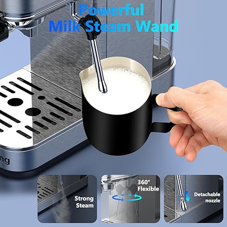 Thông tin sản phẩm Espresso Machine 20 Bar,Touch Screen Espresso Maker with Steam Milk Frother,Stainless Steel Coffee Machine for Cappuccino Latte Americano Cold Brew,1350W Fast Heat Up System,Silver