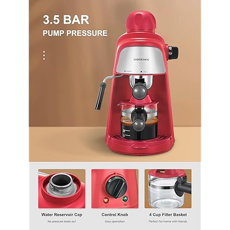 Thương hiệu Ihomekee là cái tên nổi tiếng được rất nhiều khách hàng trên thế giới chọn lựa. Với kiểu dáng đẹp mắt, sang trọng, sản phẩm Espresso Machine, 3.5Bar Espresso and Cappuccino Machine with Fast Heating Function, 1-4 Cups Coffee Maker with Milk Frothing Function and Steam Wand (Red) là sự lựa chọn hoàn hảo nếu bạn đang tìm mua một món cho riêng mình.