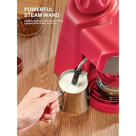 Thông tin sản phẩm Espresso Machine, 3.5Bar Espresso and Cappuccino Machine with Fast Heating Function, 1-4 Cups Coffee Maker with Milk Frothing Function and Steam Wand (Red)