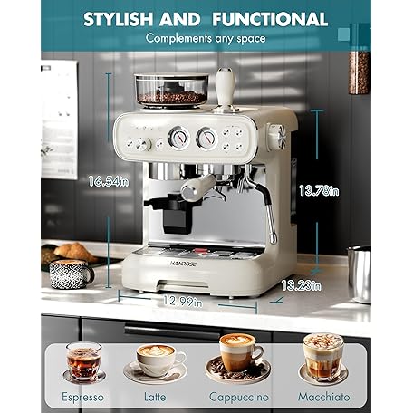 Thương hiệu Hanrose là cái tên nổi tiếng được rất nhiều khách hàng trên thế giới chọn lựa. Với kiểu dáng đẹp mắt, sang trọng, sản phẩm Espresso Machine With Grinder, 20 Bar Espresso Machine with Milk Frother Steam Wand, Espresso Machines for Home, Expresso Coffee Machines Professional, Cappuccino Latte Machine là sự lựa chọn hoàn hảo nếu bạn đang tìm mua một món cho riêng mình.