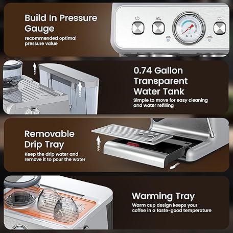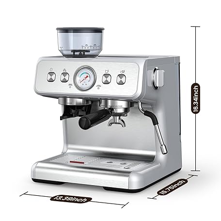 Thông tin sản phẩm Espresso Machine with Grinder, Stainless Steel 20 Bar Semi-Automatic Expresso Coffee Machines, Featuring a Milk Frother, Steam Wand, Removable Water Tank for Latte, Macchiato, Cappuccino
