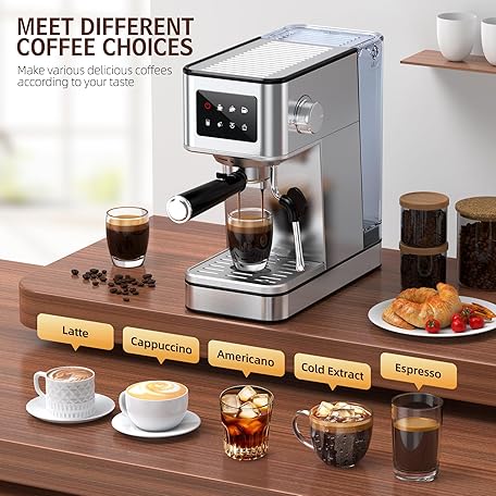 Thông tin sản phẩm Espresso Machine with Milk Frother, 20 Bar Compact Espresso Maker with Touch Screen & 57.5oz Removable Water Tank for Home, Stainless Steel Coffee Machine for Cappuccino, Latte, Silver(updated)