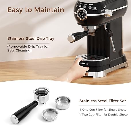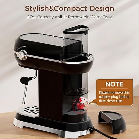 Espresso Machine with Milk Frother, 20 Bar Espresso Maker for Latte and Cappuccino, Expressions Coffee Machine with Removable Water Tank (Black)