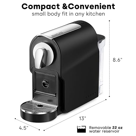 Thông tin sản phẩm Espresso Pod Machine for Home, Compact Capsule Coffee Maker for NS Original Pods, 20 Bar High Pressure Pump, 22oz Removable Water Tank, Adjustable Cup Tray, Black