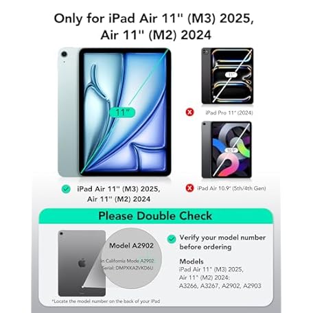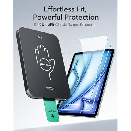 ESR 2 Pack Screen Protector for iPad Air 11 Inch M3/M2 2025/2024 (7th/6th Generation), 9H Tempered Glass Film with UltraFit Tray, Apple Pencil Support, Scratch Resistant, HD Clarity, Bubble Free