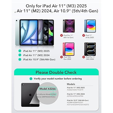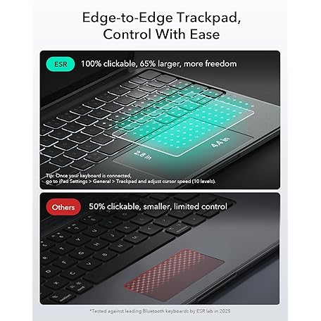 ESR for iPad Air 11" (M3/M2) & 10.9" (5th/4th Gen) Case with Keyboard, Magnetic Detachable Keyboard, Portrait/Landscape Modes, Large Click-Anywhere Trackpad, Backlit Keys, Shift Series, Black