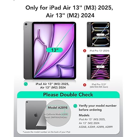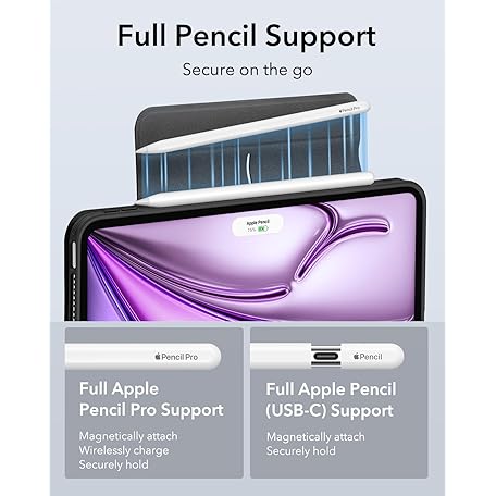 Thông tin sản phẩm ESR for iPad Air 13 Inch Case (2025/2024) M3/M2 with Pencil Holder, Removable Magnetic Cover, Vertical Stand, Fully Supports Pencil Pro and Pencil(USB-C), Rebound 360 Series, Black