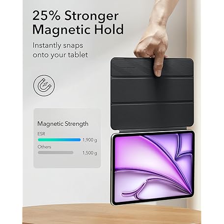 Thông tin sản phẩm ESR for iPad Air 13 Inch Case M3/M2 (2025/2024), iPad Pro 12.9 6th/5th/4th Gen, Powerful Magnetic Attachment, Slim Trifold Stand Case, Supports Pencil Pro & Pencil (USB-C), Rebound Series, Black