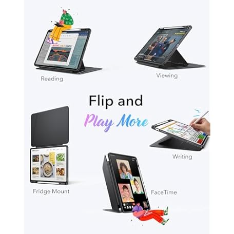 ESR for iPad Air 13 Inch Case M3/M2 (2025/2024), Vertical Stand Cover, Multi Stand Angles, Ultra-Stable Case for iPad Air 13 with Pencil Holder, Flip Series, Black