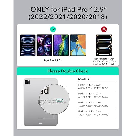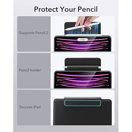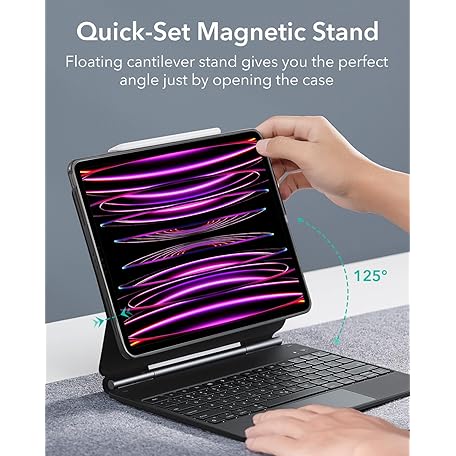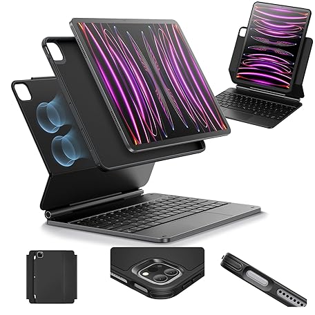 Thông tin sản phẩm ESR iPad Pro 12.9 Case with Keyboard, Easy-Set Magnetic Stand, Portrait/Raised Modes for iPad Pro 12.9 (6th/5th/5th/3rd), Removable Protective Case, Rebound 360 Series, Black