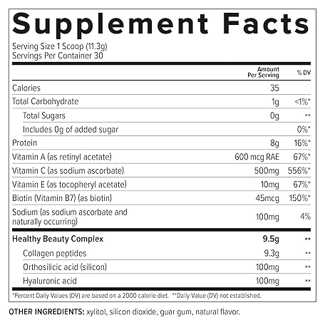Thông tin sản phẩm Essential Nutrition Collagen Skin - Hydrolyzed Collagen Peptides, with Hyaluronic Acid, Silicon & Biotin - Hair, Skin & Nails - Neutral - 11.9 oz (30 Servings)