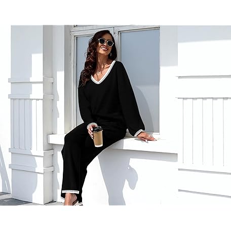 Thương hiệu ETCYY NEW là cái tên nổi tiếng được rất nhiều khách hàng trên thế giới chọn lựa. Với kiểu dáng đẹp mắt, sang trọng, sản phẩm ETCYY NEW Womens 2 Piece Outfits Sweater Lounge Set Casual V Neck Knit Pajama Set Long Sleeve Top Wide Leg Pants Loungewear là sự lựa chọn hoàn hảo nếu bạn đang tìm mua một món cho riêng mình.
