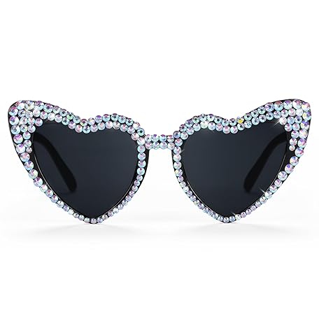 Etercycle Heart Shaped Sunglasses, Fashion Heart Sunglasses Party Decorations, Black Rhinestone Glasses Engaged Gifts for Women Bachelorette Party Favors
