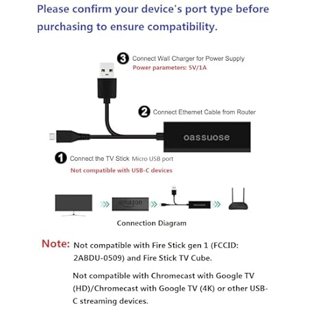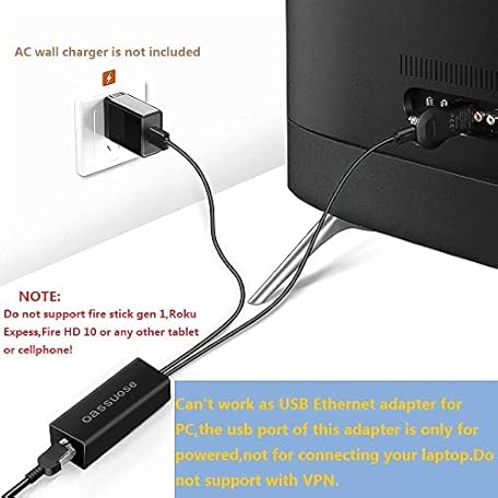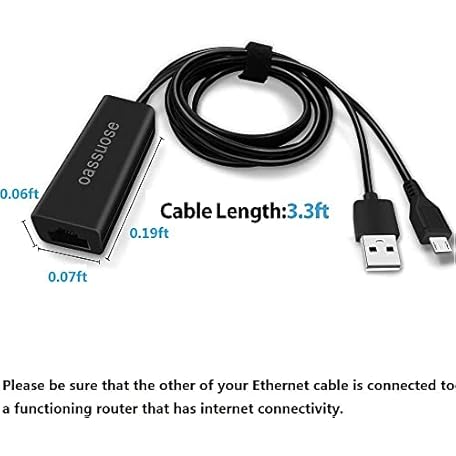 Thông tin sản phẩm Ethernet Adapter for Fire TV Stick,Fire Stick 4K Ethernet Adapter,for Chromecast Ultra/Google Home Mini and Other Streaming TV Sticks.Micro USB to RJ45 Ethernete Adapters-3.3ft