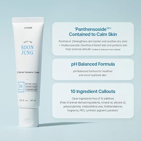 Thông tin sản phẩm ETUDE SoonJung 2x Intensive Cream for Barrier Repair, Rich Moist, Madecassoside & Panthenol for Soothing, Face Moisturizer for Sensitive Skin, pH Balanced, Hypoallergenic, Korean Skin Care,2.02 Fl Oz