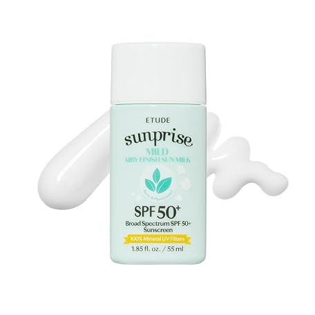 Sản phẩm ETUDE Sunprise Sunscreen Mild Sun Milk SPF 50+ / PA++++ (55ml) | Sebum-free, Non-Sticky, Long Lasting Protection, 100% Mineral Korean Sunscreen for sensitive skin đang được bán với giá ưu đãi là $19.62 tại nước Mỹ.