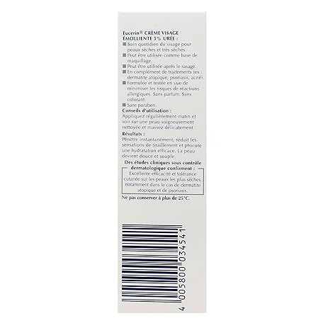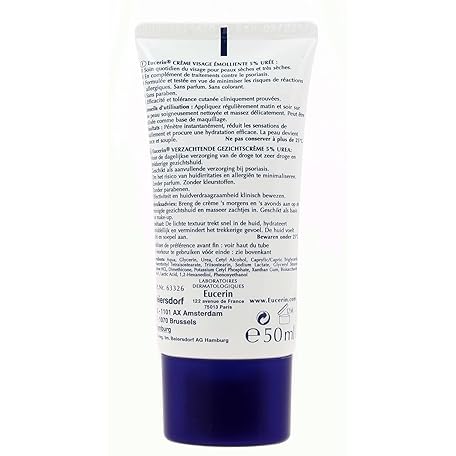 Thông tin sản phẩm Eucerin 5% Urea Smoothing Face Cream, 50ml - Hydrating Moisturizer for Dry Skin, Dye-Free, Adult