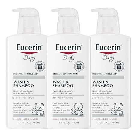Thông tin sản phẩm Eucerin Baby Unscented Baby Shampoo and Body Wash, Hypoallergenic, Tear Free Shampoo and Wash with Pro-Vitamin B5 and Shea Butter, 13.5 Fl Oz Bottle 3 pack