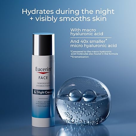 Thông tin sản phẩm Eucerin Face Immersive Hydration Night Cream with Hyaluronic Acid and Provitamin B5, Face Moisturizer Smooths Fines Lines and Wrinkles, Holiday Gifts for Self Care, 2.5 Oz Bottle